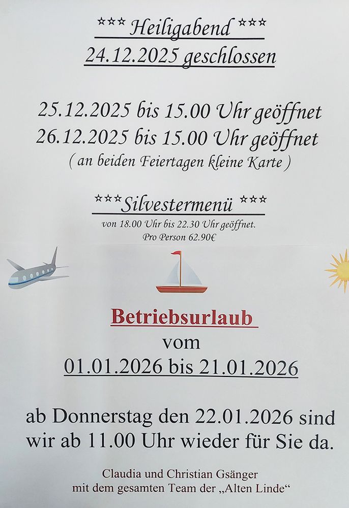 Das Gasthaus "Alten Linde" ist bereits in 5.ter Generation unter der Leitung der Familie von Claudia Gsänger.